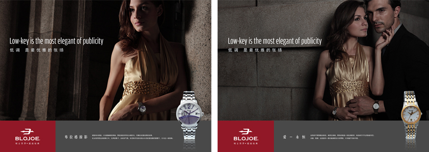 對應“高收入型手表消費者”滿足他們的身份特征和需求特征,對應“白領手表消費者”,用略微拔高的品牌形象,滿足他們對高端品牌及品牌性價比的需求。同時在其他訴求中,通過品牌的瑞士身份、傳統的制作工藝、對品位的極致追求以及簡約的時尚風格,展現百喬手表作為高端消費品牌的強大魅力。