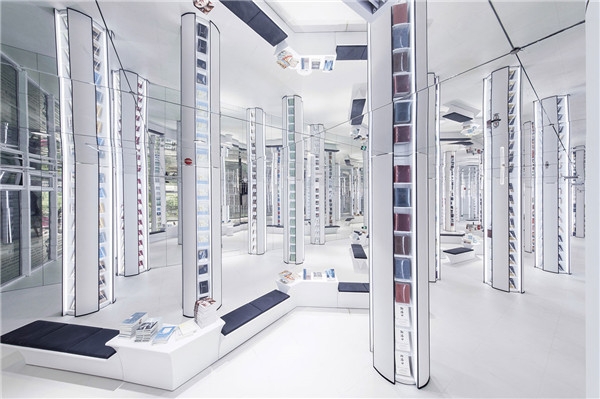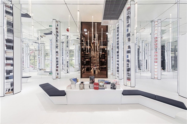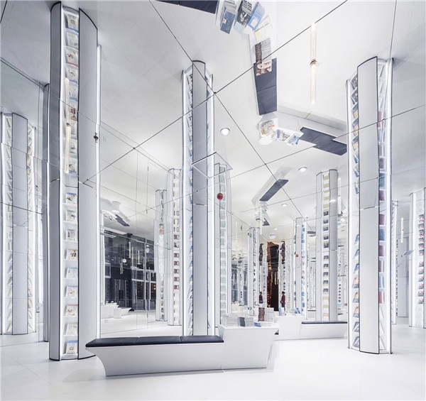 盤旋在二層的,是一個(gè)現(xiàn)代感十足,極簡(jiǎn)冷色調(diào)的空間,在這些純白的墻面與玻璃頂棚所構(gòu)造的理念中,是為了呼應(yīng)書店要說的“知識(shí)的光”,讓人在多重鏡面的交錯(cuò)中,體驗(yàn)一種無限延伸的視覺感受,在這里領(lǐng)悟“向上”的力量。