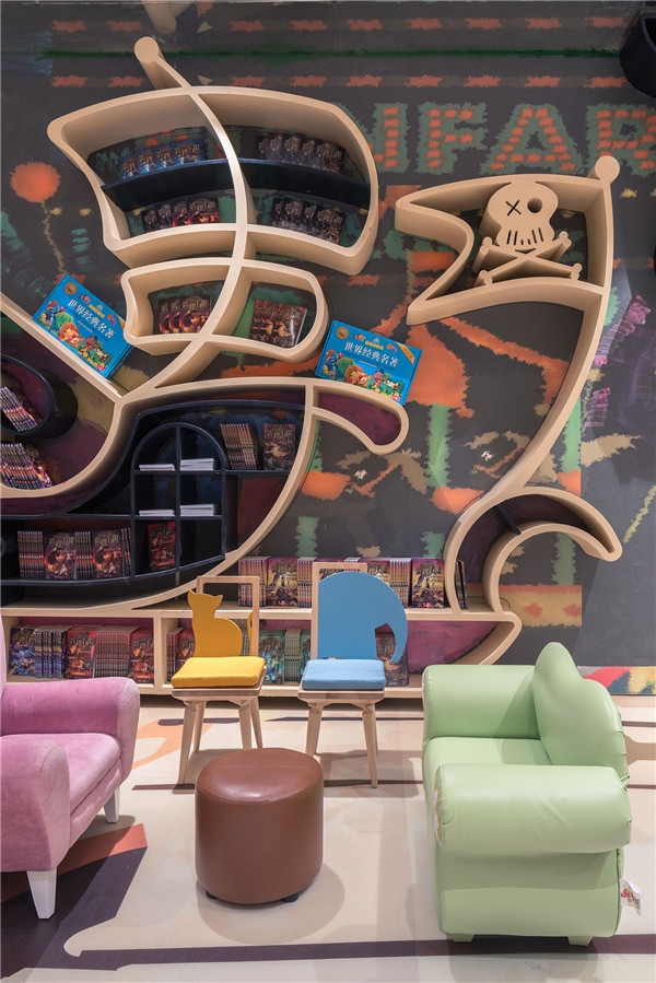 不論是過山車,旋轉(zhuǎn)木馬,還是大風(fēng)車,海盜船,熱氣球,色彩豐富絢麗的書架,無處不散發(fā)著奇思妙想的童趣,想必這也是吸引家人帶孩子來閱讀的最大動(dòng)力吧?