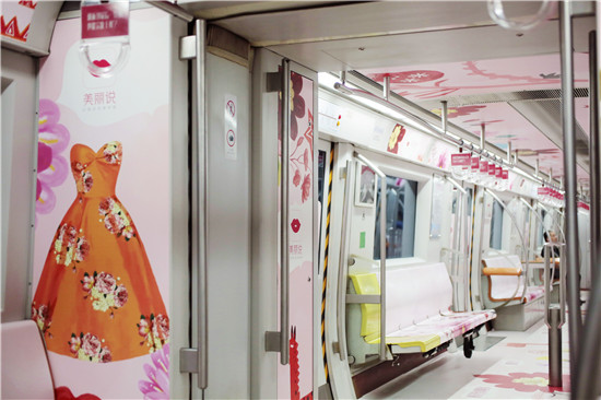 為讓都市白領女性勇敢表達對美的看法,我們在北京一號線打造了“美麗說女性專列”, 讓整個車廂都被清新的印花設計給包圍,拉環(huán)上還有姑娘們關心的時尚問題,通勤之余引發(fā)大家的美麗思考。除此之外,車廂內更隨處可見各種流行單品圖案,如禮帽、墨鏡、高跟鞋、手包等,還有“你美你先坐”、“剁手黨”、“九頭身”等女性專屬地貼,讓白領女性們對號入座,說出自己對美的看法。真正做到在城市的穿梭中與女性真實對話,傳達“美麗 聽自己說”的獨立態(tài)度。