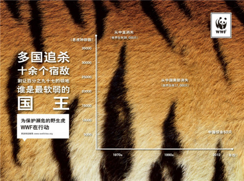 WWF(世界自然基金會)這一組呼吁保護瀕危動物的平面廣告,短短的文案,有比喻,有沖突,有對立,“誰是最軟弱的國王?”、“誰是最落魄的貴族?”,冷靜的文字勾勒出急迫的故事。沒有站在道德制高點叩問人類的良心,卻有觸動人心的力量。